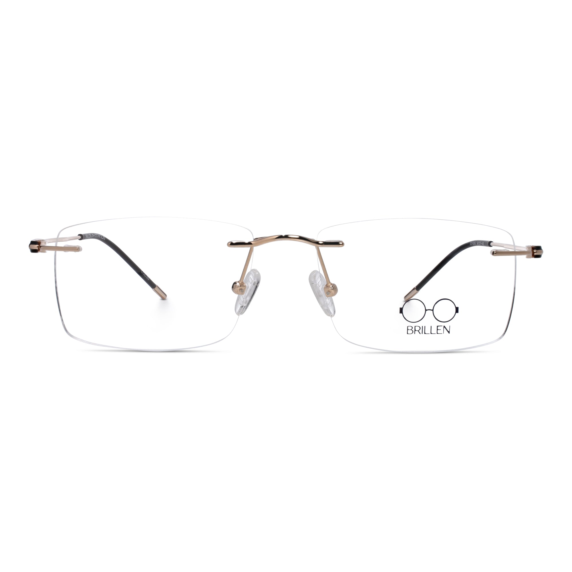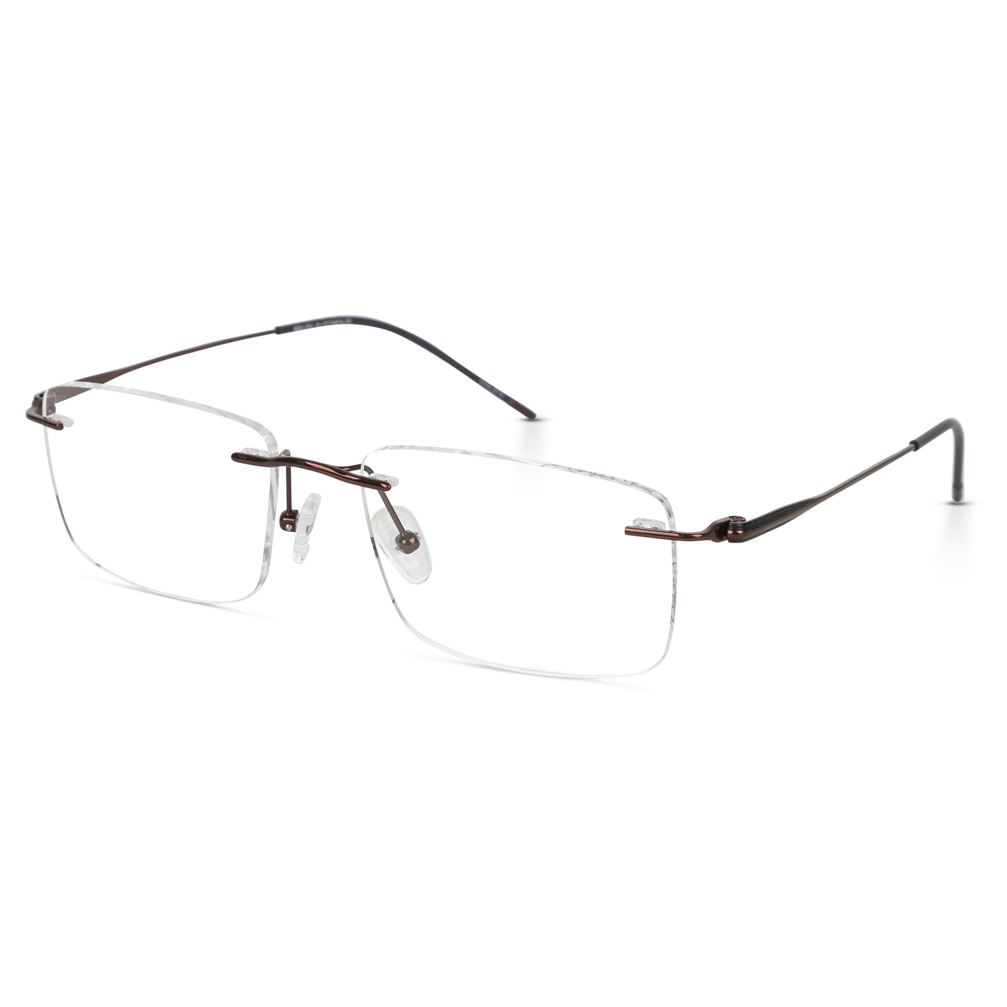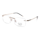 Lightweight titanium optical frame designed for both men and women. Available in gold and brown finishes. Durable construction with a minimalist aesthetic suitable for everyday wear.
