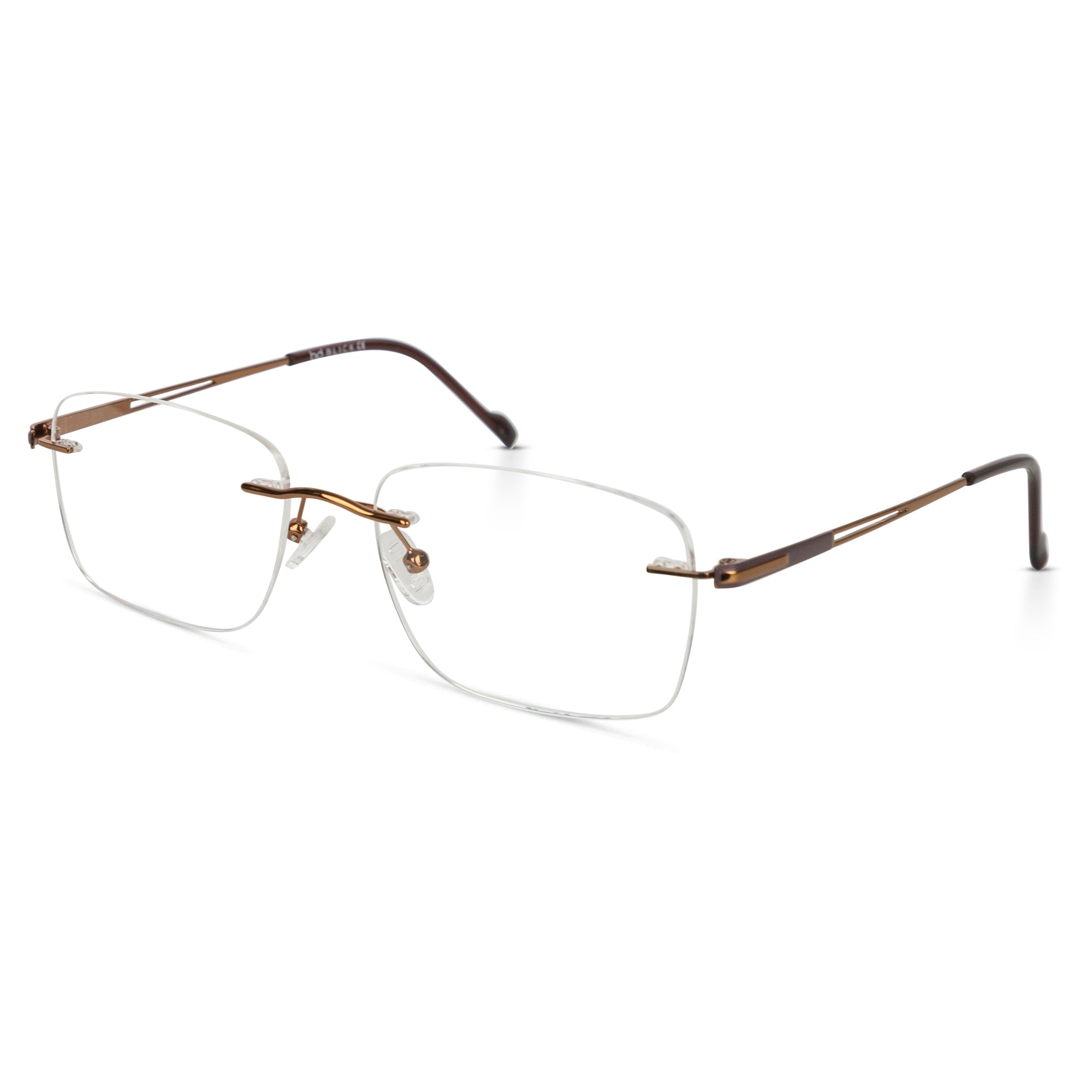 Rimless titanium optical frame for men and women available in gold and brown